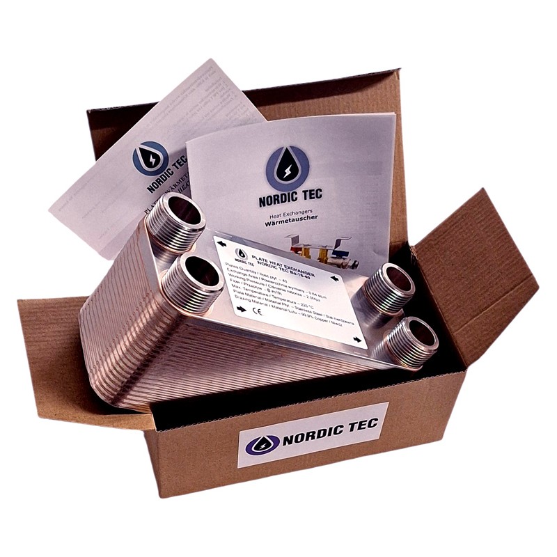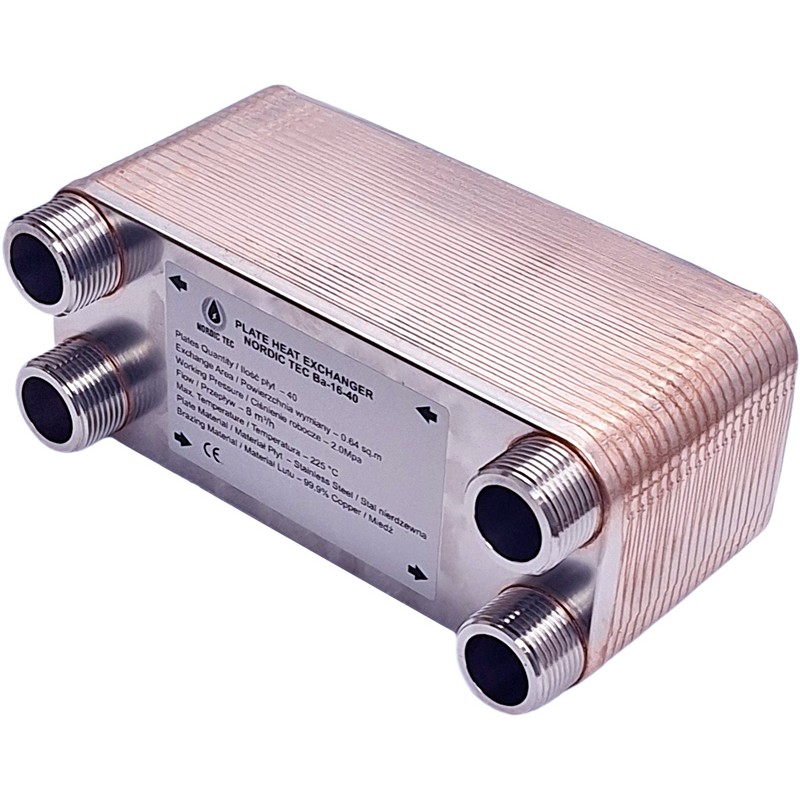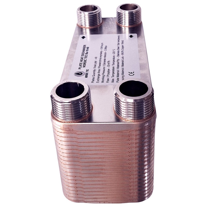 The Ba-16-40 model has a wide range of applications and can operate with many types of heating devices, with the exception of heat pumps, for which it is not recommended (these devices usually require larger plate surface areas, simply meaning larger heat exchangers). The Nordic Tec Ba-16-40 works excellently, among other uses, as a heat exchanger for a log burner with back boiler, when a solution with 1-inch connections is required.