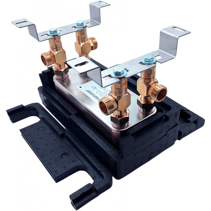 A 20-plate heat exchanger will be an excellent choice for servicing a water-jacketed fireplace, if there is a need to separate it from a closed circuit installation (fireplaces usually operate in an open circuit, which is the safest and most sensible solution). A water-jacketed fireplace is a relatively slow heat source compared to today's automated boilers, which is why proper selection of the heat exchanger is quite important (the fire will not go out and will continue to supply heat to the water jacket even if the heat exchanger is too weak and can't keep up with the heat demand from the jacket). For full certainty and safety over many heating seasons, it is most optimal to use this heat exchanger for fireplaces with outputs of up to 20 - 22 kW .