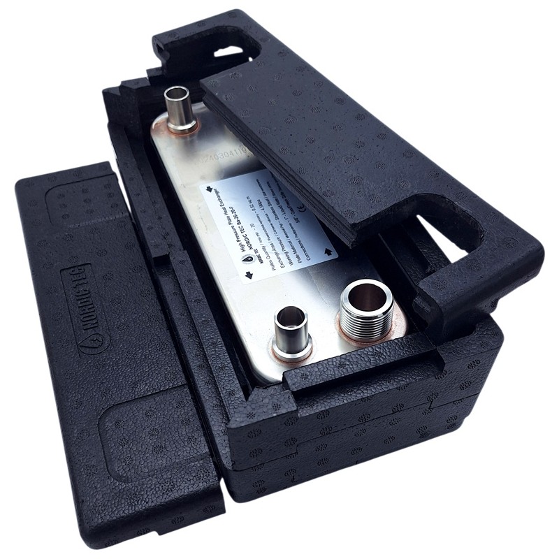 The 20-plate Freon heat exchanger is also optionally available with thermal insulation, which increases heat transfer efficiency by reducing heat loss to the surroundings.