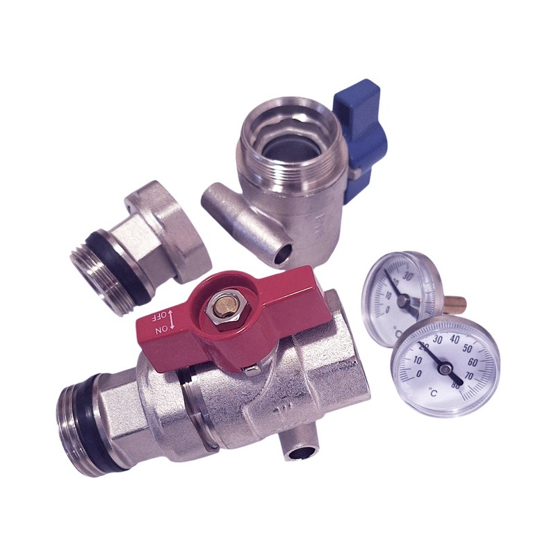 The set is universal, it can be used in cooperation with various hydraulic devices, where at some point it may be justified to cut them off from the system (for example for servicing), without getting rid of the water from the entire system. Additionally, the fact that the valve is connected to a thermometer allows us to control the temperature of the flows in important places of the installation
