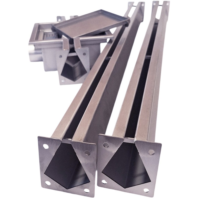 As previously mentioned, the basic set includes two stainless steel channels-arms - along with all necessary seals and fittings for connecting or capping the ends, if no extension is planned. This makes the length of the carpark drain virtually unlimited, and the system is often used even in large hangars, garages or warehouses.