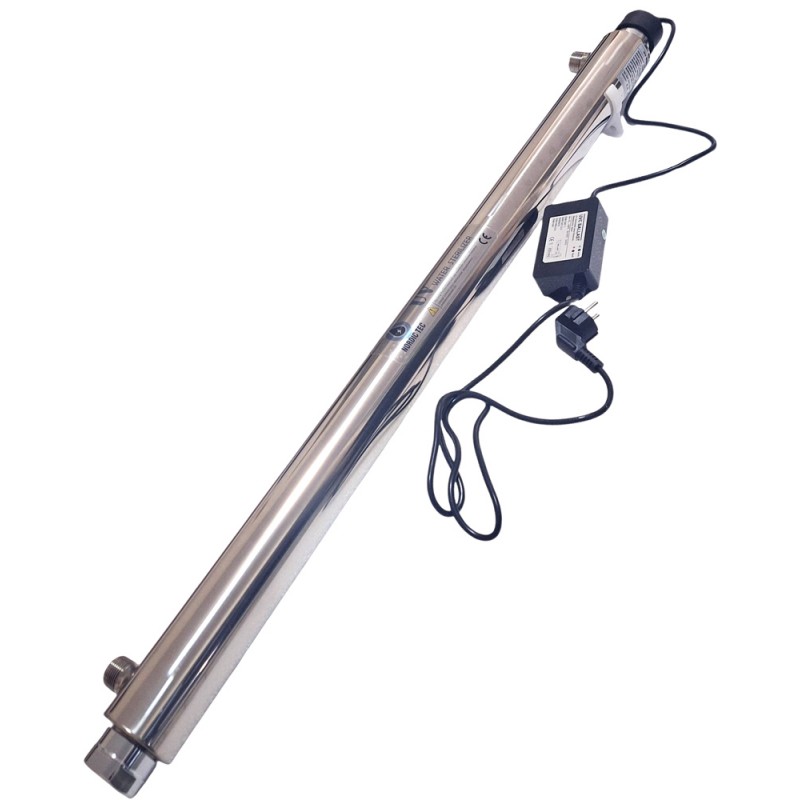 A system for sterilizing drinking and utility water using ultraviolet rays, based on TUV bulbs from the PHILIPS brand. Thanks to UV light, the lamp acts as a water purifier UV, especially in situations where water is drawn from a private source, but also from municipal or communal networks where biological contamination has been detected. The most common and emblematic problem tackled by UV water lamps is colonies of E. Coli bacteria.
